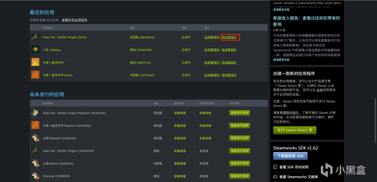 首先來到SteamWorks的後臺,找到要設置標籤的遊戲,點擊該遊戲的“商店管理員”