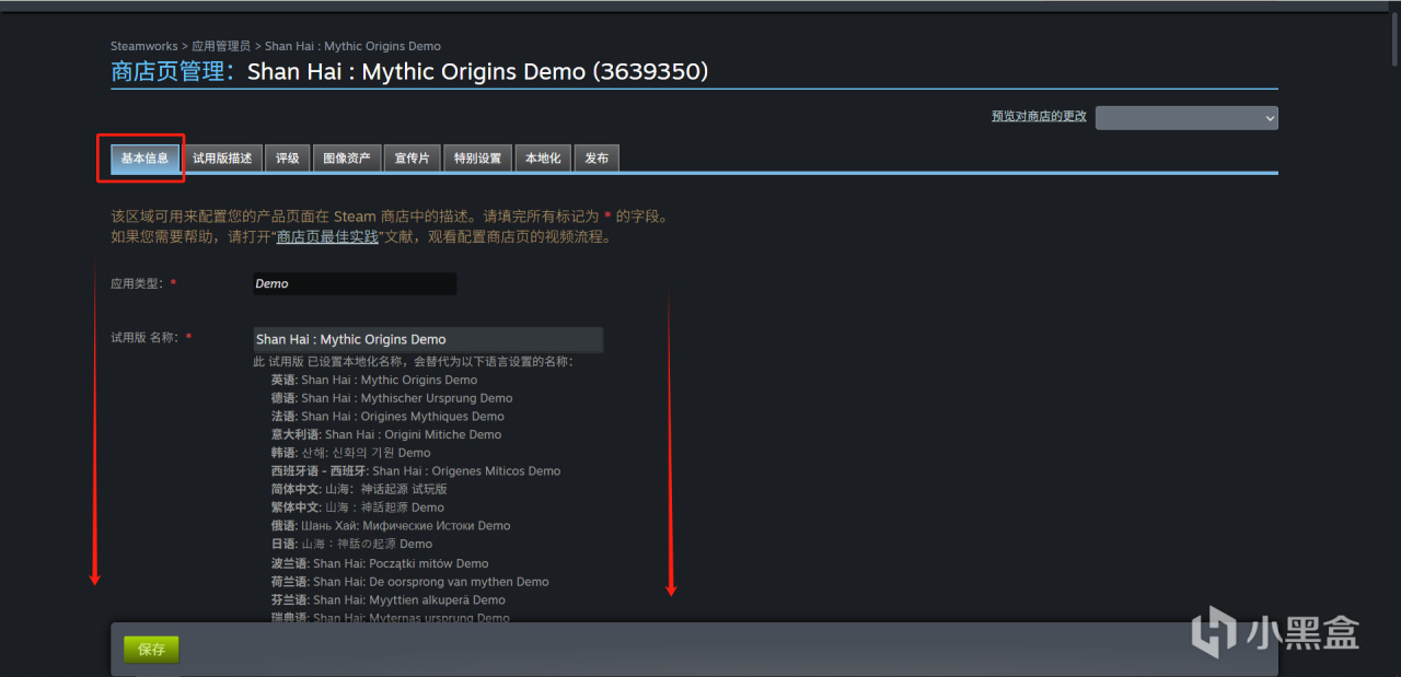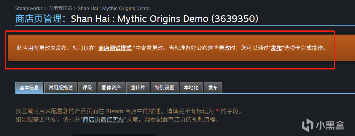 點擊“保存”後,Steam會提示商店頁面需要“發佈”纔會變更,先不用急,等我們設置完全部的標籤再去點。