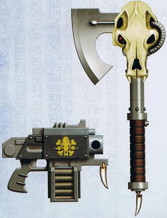 暴風槍(Storm Bolter):太空野狼定製型號,射速900發/分,彈匣改配冰霜穩定劑,可在極地環境無故障連射。