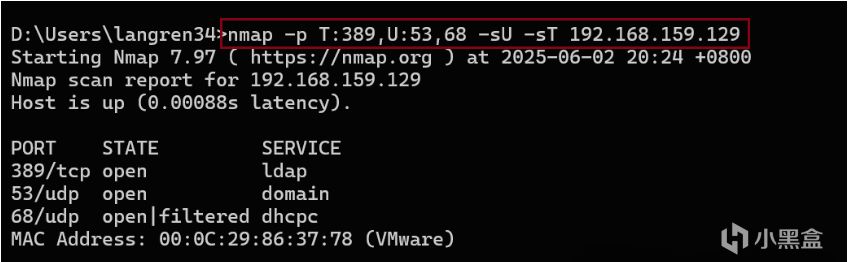 nmap -p T:389,U:53,68 -sU -sT 192.168.159.129