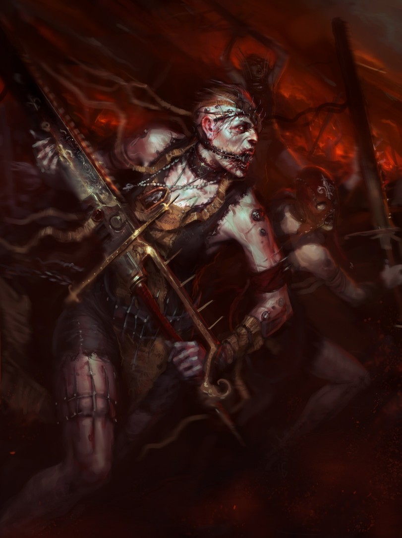 因違反戒律而贖罪的修女,穿戴 悔罪兜帽(Penitent Hood) 與重型鏈鋸劍(Eviscerator)。她們以自焚式衝鋒尋求救贖,由 懺悔者導師(Repentia Mistress) 用神經鞭驅使作戰。極少數懺悔者可通過英勇犧牲恢復名譽,甚至晉升爲正式修女。