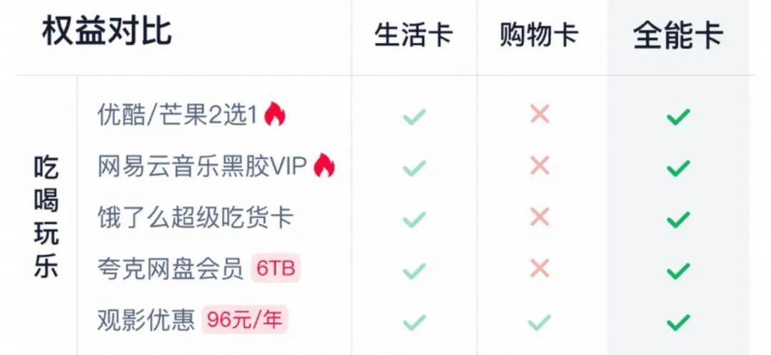 考慮到不同會員的開通方案不一樣,所以對比權益時只看單開年卡相關權益,其他聯合會員就不一一介紹了。