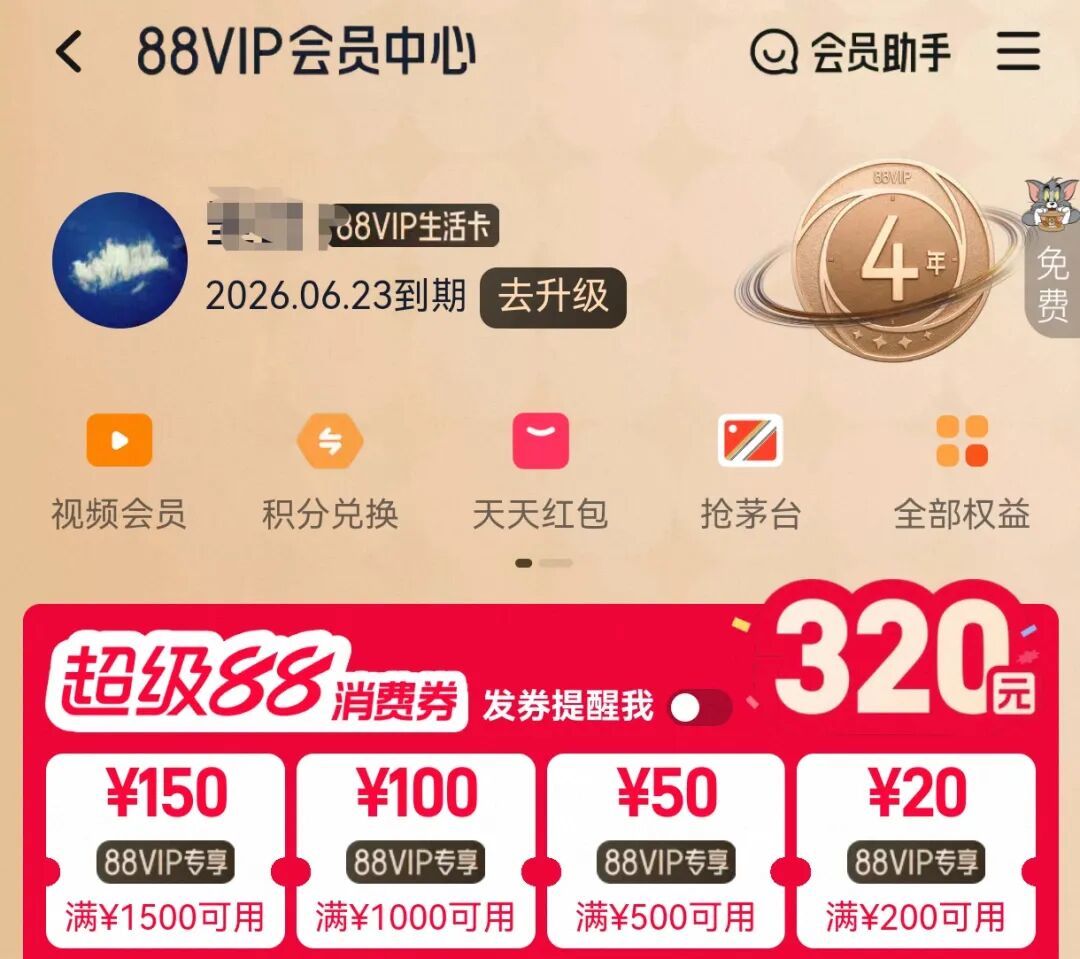 淘寶88VIP目前有生活卡、購物卡、全能卡三種方案,淘氣值1000分以上生活卡、購物卡爲88元/年;全能卡爲168元/年。