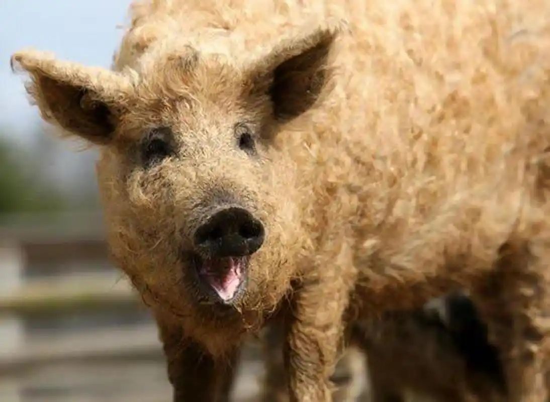 曼加利察豬是偶蹄目豬科豬屬動物。個頭較大,身體圓滾較短,長有大量捲曲毛髮,頭小,耳朵中等大小,向前生長,有點耷拉。瞳孔爲棕色,毛色分有棕色、紅色和黑色。曼加利察豬原產於匈牙利、奧地利和巴爾幹半島一帶。喫玉米、土豆、胡蘿蔔等豬飼料,喜食牧草、野山果等。曼加利察豬是歐洲瀕危地方品種,擁有200 多年的飼養歷史。其特色是全身瘦肉少,脂肪比一般豬多一兩倍,是做火腿、香腸的上等豬肉。因爲同和牛一樣,脂肪重量與肉重量基本持平,被稱爲豬中和牛。其肉色鮮紅,接近牛肉,肉味強勁,富含不飽和脂肪酸,膽固醇的含量也比現代品種低。傳說,其是由野豬和家豬雜交而成的一個豬種,最早出現在18世紀末約瑟夫·安東王子的莊園裏,當初培育其的目的是爲了得到更多的肥肉。
