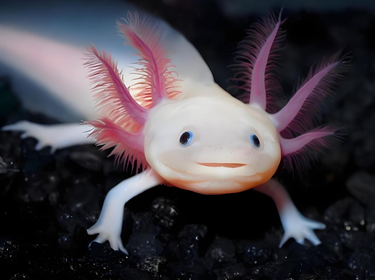 墨西哥鈍口螈(學名:Ambystoma mexicanum)是鈍口螈科、鈍口螈屬兩棲類動物,又名六角恐龍、美西螈。野生的墨西哥鈍口螈體色爲深棕色,帶有黑色斑點。頭部較寬,眼睛較小,四肢和四足嬌小。體長通常爲20-30 釐米,體重60-110克。皮膚光滑無鱗,不具鼓室和鼓膜。擁有明顯的外鰓和鰭狀尾巴,呈羽毛狀。背鰭從頭背向後延伸至尾端,腹鰭從兩個後肢中間延伸至尾巴末端,利於在水中游泳。 墨西哥鈍口螈野生個體僅分佈在霍奇米爾科湖、查爾科湖和查普爾特佩奇湖的運河中。多在水底覓食,主要靠嗅覺側線感知捕食,它們捕獵的方法很獨特,發現食物後會慢慢地接近獵物,接着通過腹腔的真空力量把獵物吸食到口中。墨西哥鈍口螈幼體喫水藻,成體有肉食習慣,以小型魚類、昆蟲、軟體動物和節肢類及兩棲動物幼體等爲食。