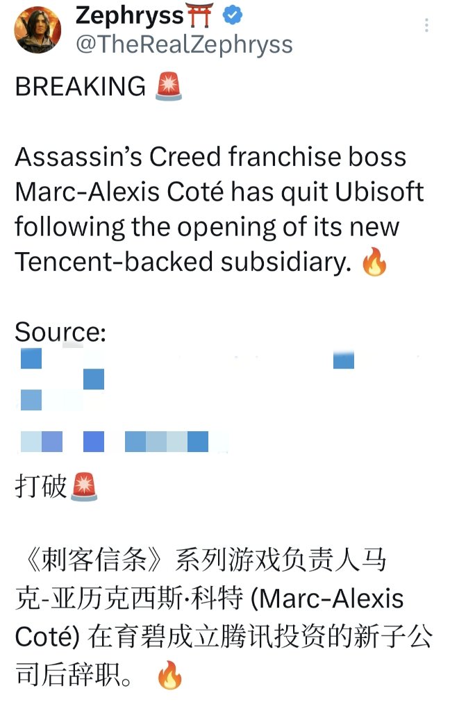 育碧發言人在對外聲明中表示:“在2025年3月宣佈的組織架構調整之後,Marc-Alexis Côté 選擇在育碧之外開啓新的職業道路……我們深切感謝他多年對《刺客信條》品牌的貢獻,並祝願他未來一切順利。”