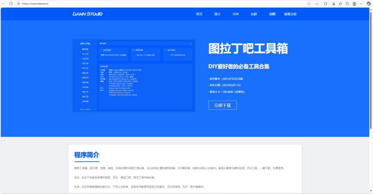 首先,我們在官網下載圖吧工具箱,地址爲: https://www.tbtool.cn/
