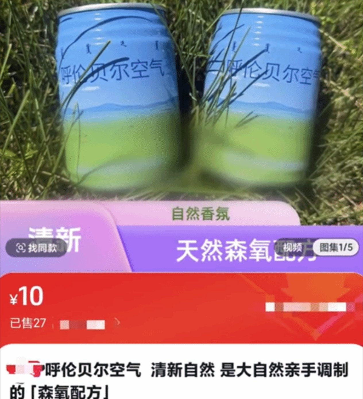 電商平臺現售價10元的“呼倫貝爾空氣”,公司工作人員稱該產品已持續生產9年,產品成熟且擁有穩定的消費羣體。同店還有一款建議零售價100元的空氣產品,成分爲空氣、小麥草粉,適用人羣標註爲“城市人口”。