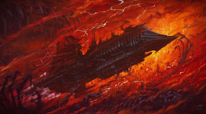 它既是人類跨越星海的橋樑(需依賴由帝皇支撐的“星炬”導航),也是混沌勢力的巢穴,智慧生物的情緒(如憤怒、慾望、絕望)會凝結爲實體,小至亞空間野獸,大至混沌惡魔。例如,恐虐的惡魔軍團正是由無數戰爭狂潮中的殺戮慾望孕育而成 。