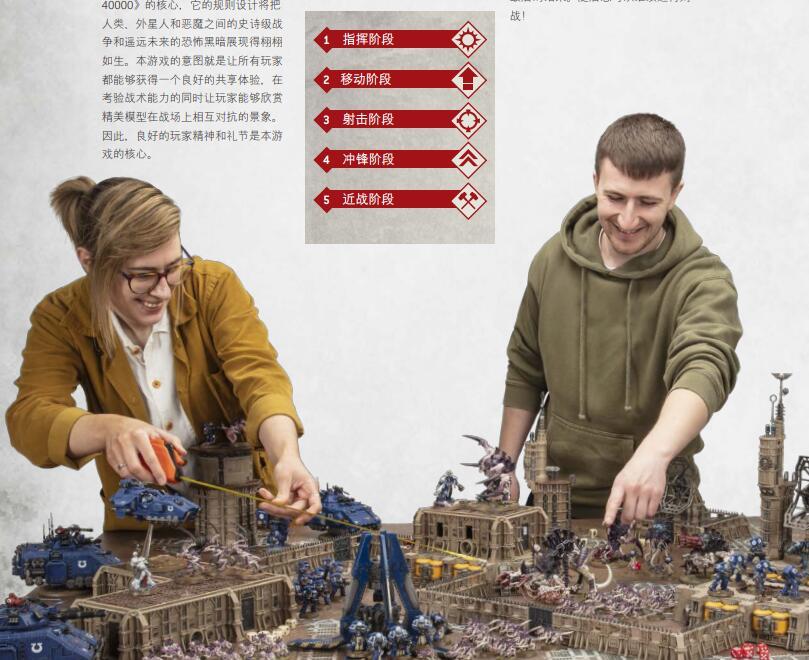 上桌對戰是《戰錘40K》最大的樂趣之一。在常規戰鬥中,單方軍隊的分值一般在2000分以內;而在“啓示錄”級的大戰中,數萬分的部隊也不鮮見。遊戲按回合制進行,每位玩家在回合內爲己方的所有單位選擇將要採取的具體行動,然後投擲骰子並根據點數確定行動的結果。