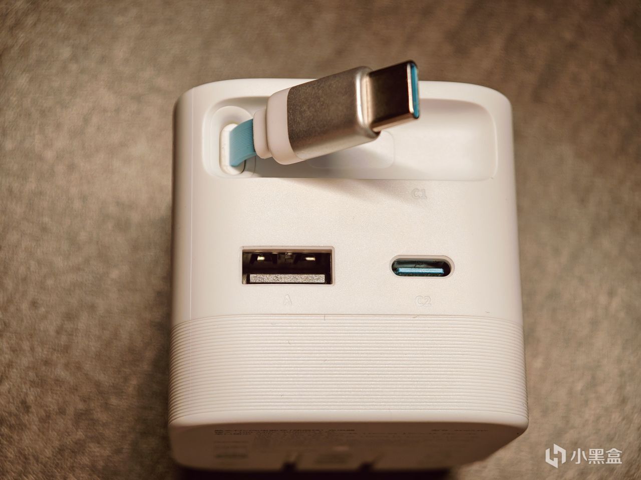 配置有兩根自帶線:USB-C和Lightning,後者通過了蘋果MFi認證,同時還提供了1C+1A端口,兩根自帶線採用了編織工藝,耐用性可以保障。