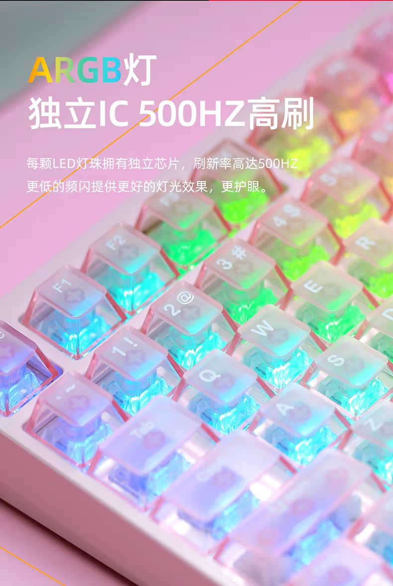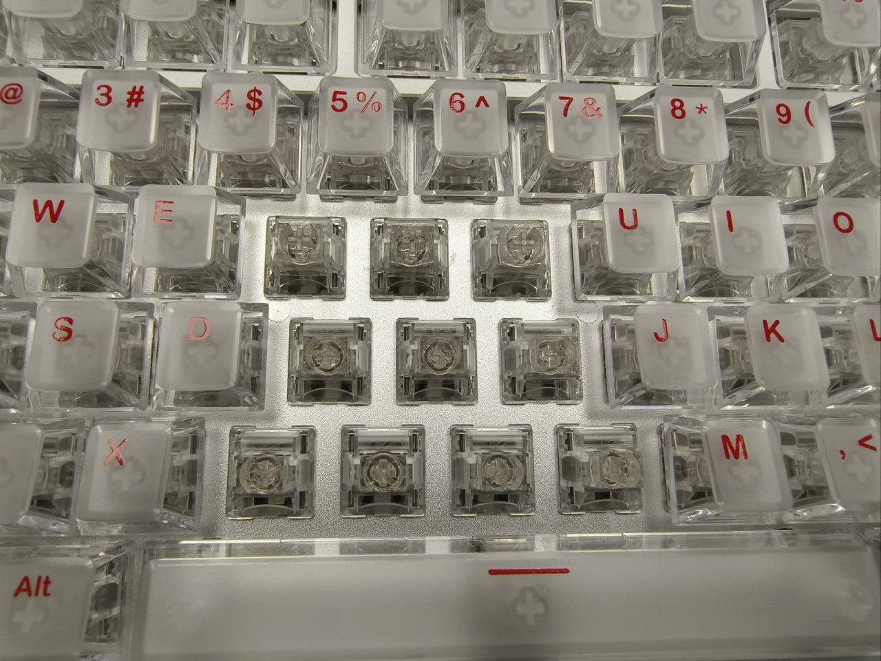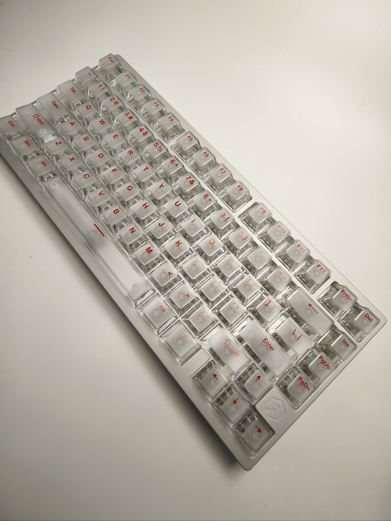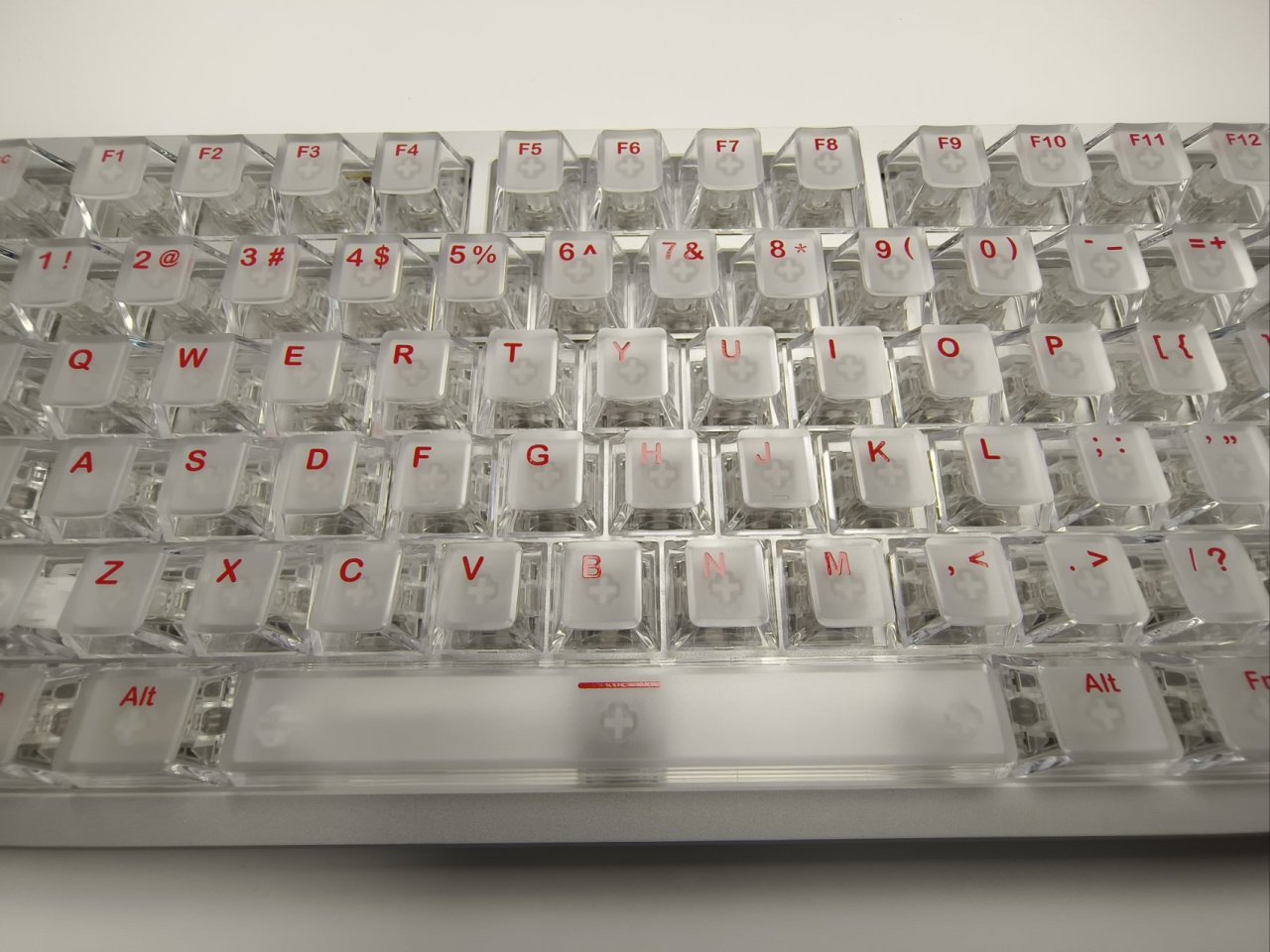 這就不得不提一下艾石頭最新研究出來的全新軸體——清輝磁軸。我也是剛知道,艾石頭居然偷偷更新旗艦磁軸,之前老大哥還是星光磁軸來着。先來說一下這款清輝磁軸的外觀,可能是艾石頭自己也意識到自己對霧透鍵帽有着超乎常廠的愛戴,於是這次磁軸索性設計成了全透明材質和獨立導光柱設計,這就讓這款鍵盤在不開燈光的情況下顯得素素的,但是一開燈光那瞬間就發出來清澈的光輝。