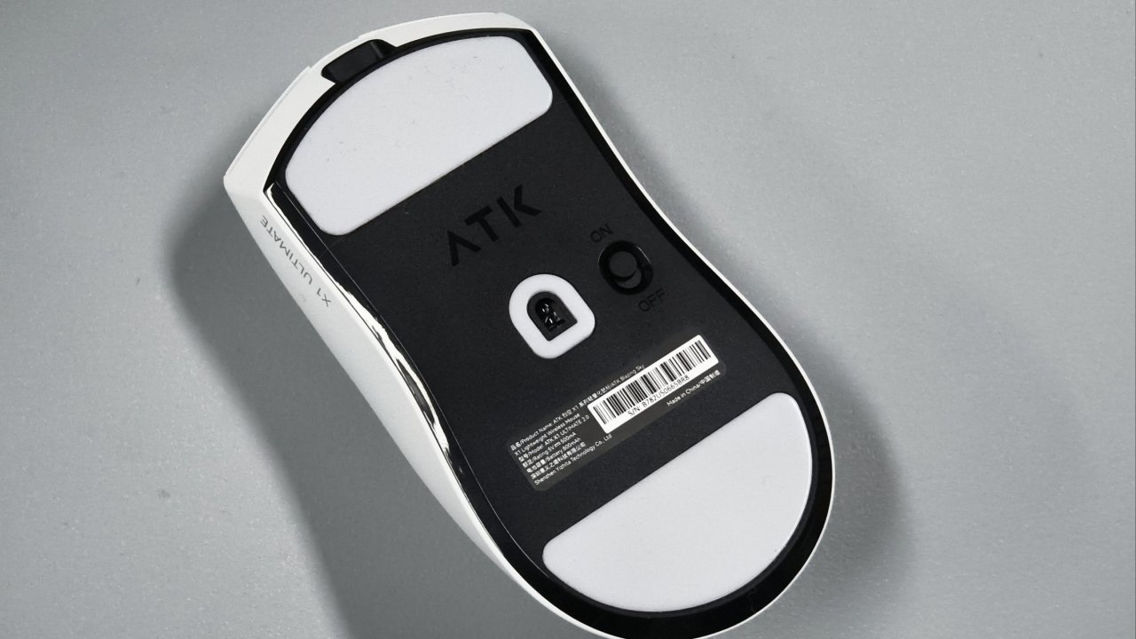 可能有的人會說爲什麼沒有2.4G接收器的收納倉,那是因爲他把接收器都集成在了底座上面,這款鼠標自帶8K接收器。如果你買過很多次ATK他家的鼠標,他家的接收器以往都是棱形樣式的。