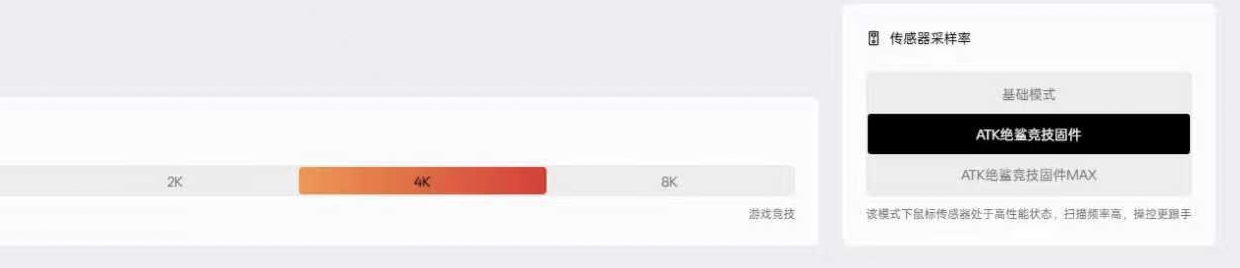 在性能設置那裏,除去能調節基礎的回報率外。還可以調節3種鼠標的採樣模式:基礎模式/ATK絕鯊固件/絕鯊固件MAX