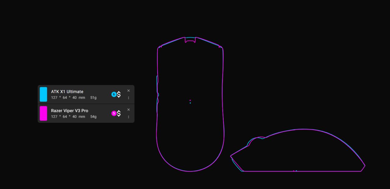 X1這個系列大家也清楚,本身就是靠性價比與和雷蛇毒蝰V3PRO相似的模具所出名的。X1 V2作爲X1的二代版本在模具方面依舊沒有改變。當然我爲了更加的嚴謹。我使用了ELOSHAPES查詢了類似的模具,下面我就將相關數據列出來吧: