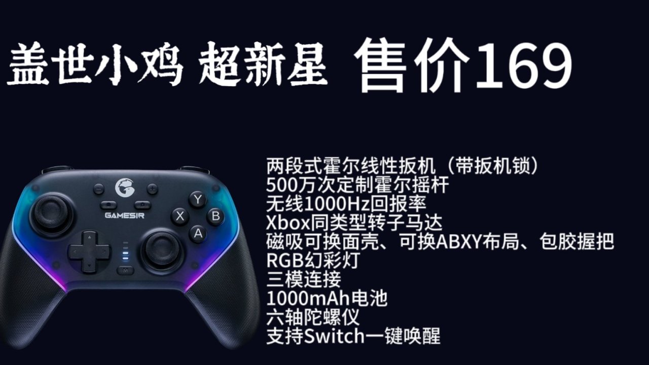 在一衆手柄中,絕對是新手玩家不能錯過的性價比!配置真不含糊:三模連接,定製霍爾搖桿+霍爾扳機帶扳機鎖,曾卓君小孩調校的機械圓盤十字鍵,格鬥玩家狂喜,1000Hz有線無線雙高回報率,加上背部兩顆宏背鍵;600mAh電池。我的評價是該有的都有了然後才賣這個價。