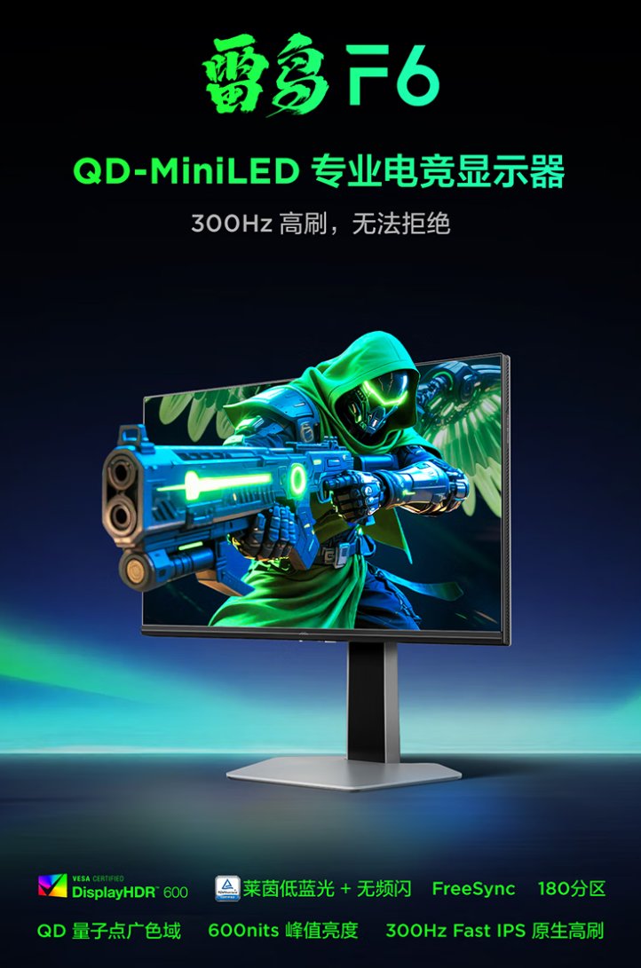 直到最近的戰地6發售,朋友看到我在玩便建議我換個高刷顯示屏打FPS體驗會更好,所以也是趁着最近有折扣拿下了雷鳥的F6。