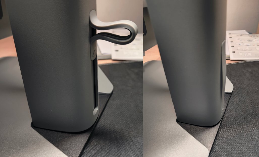 而且支架後方的這個橡膠理線帶也挺實用的,方便我們整理桌面。
