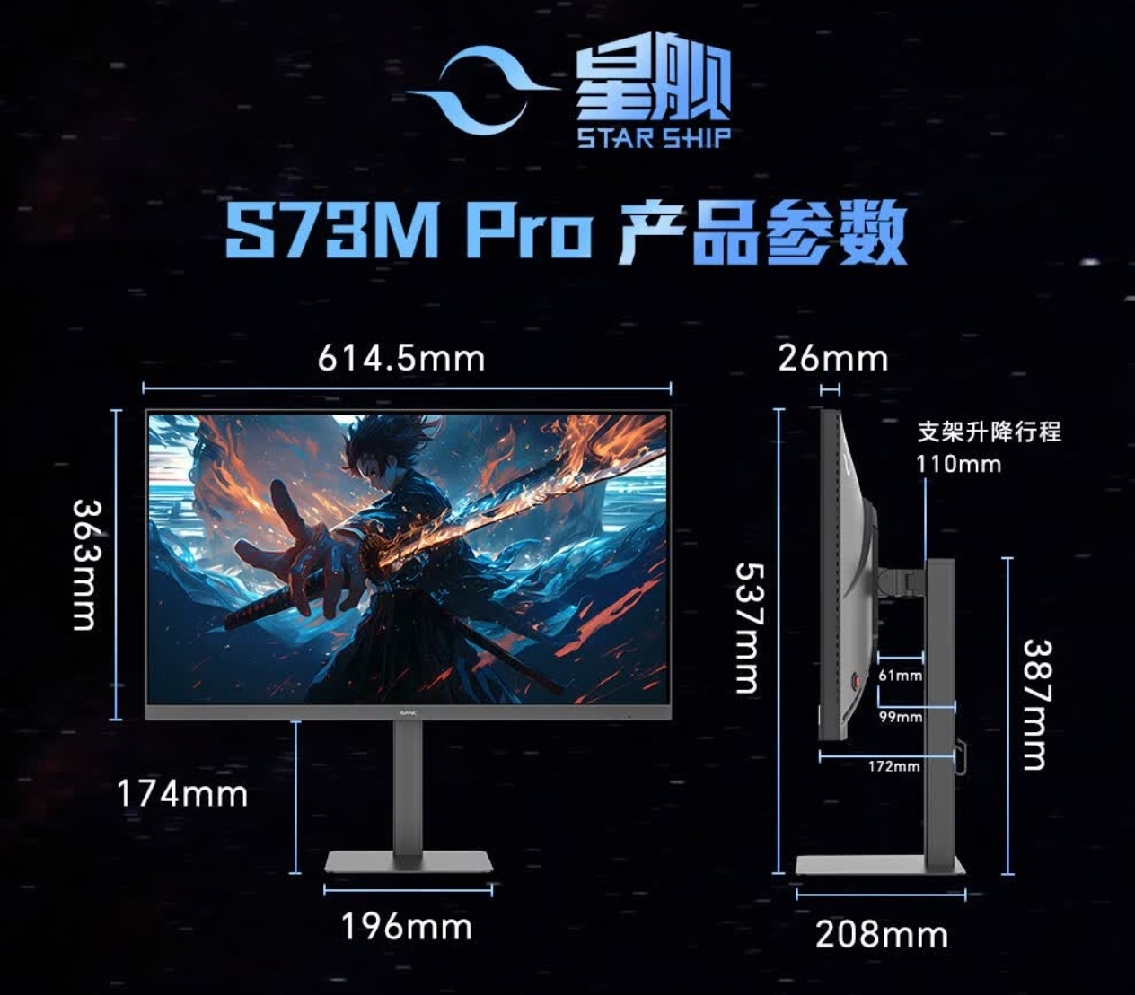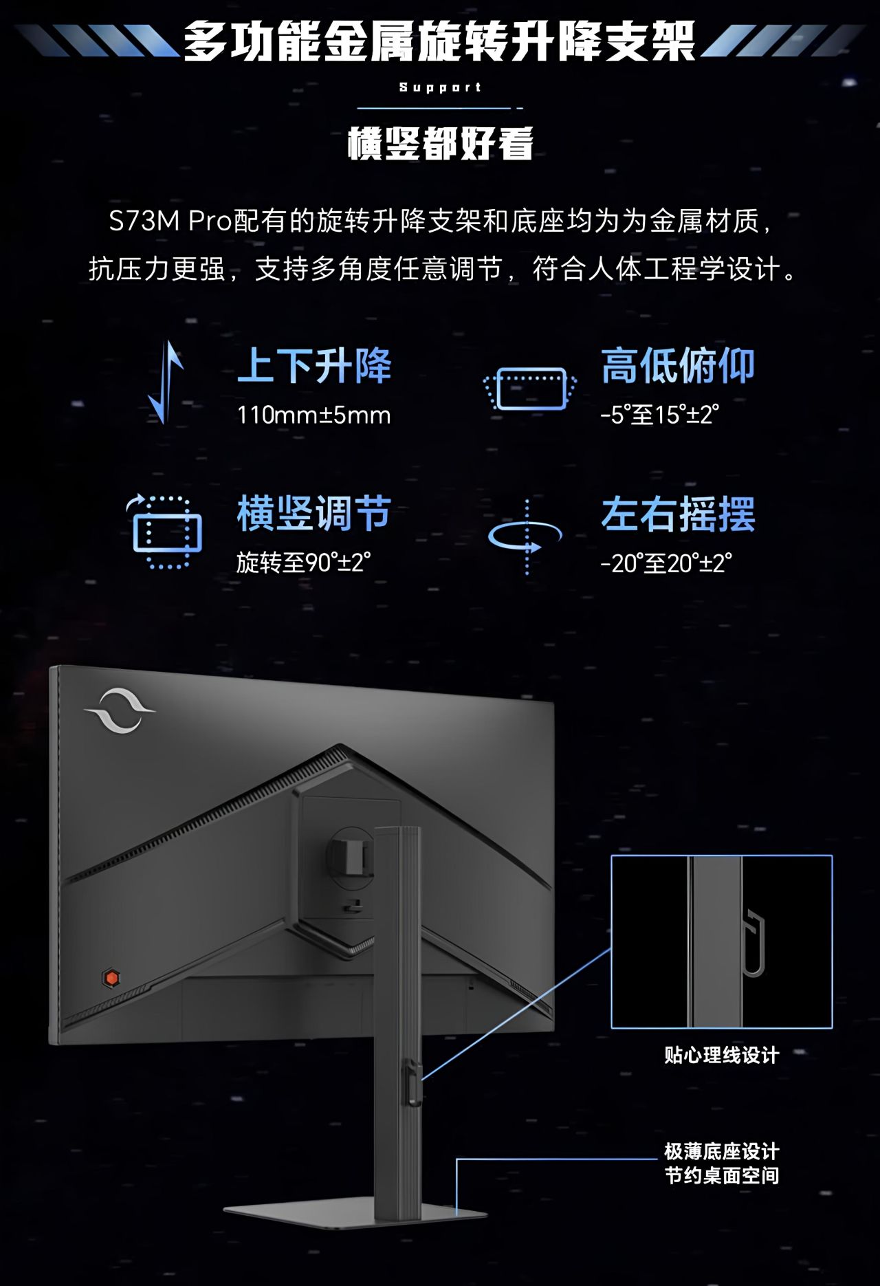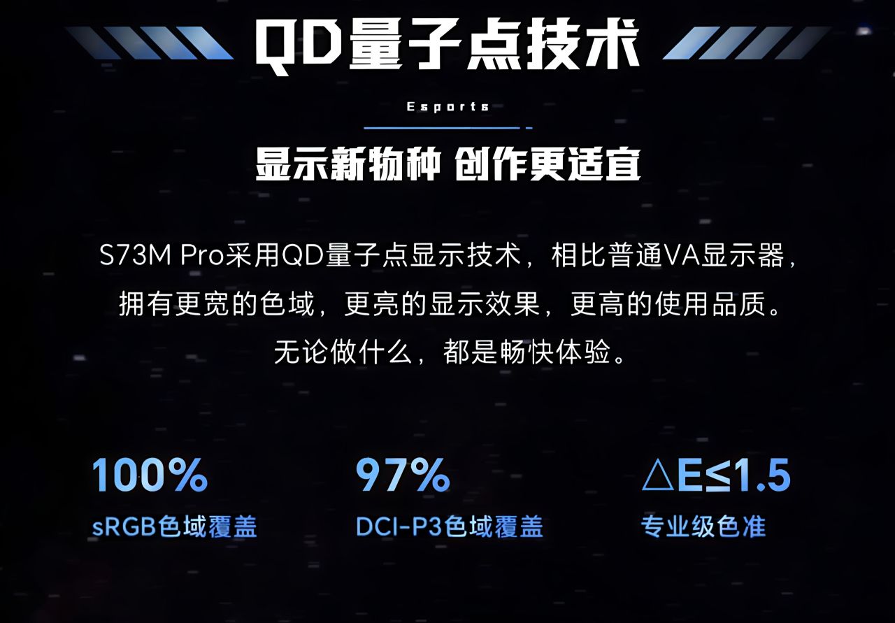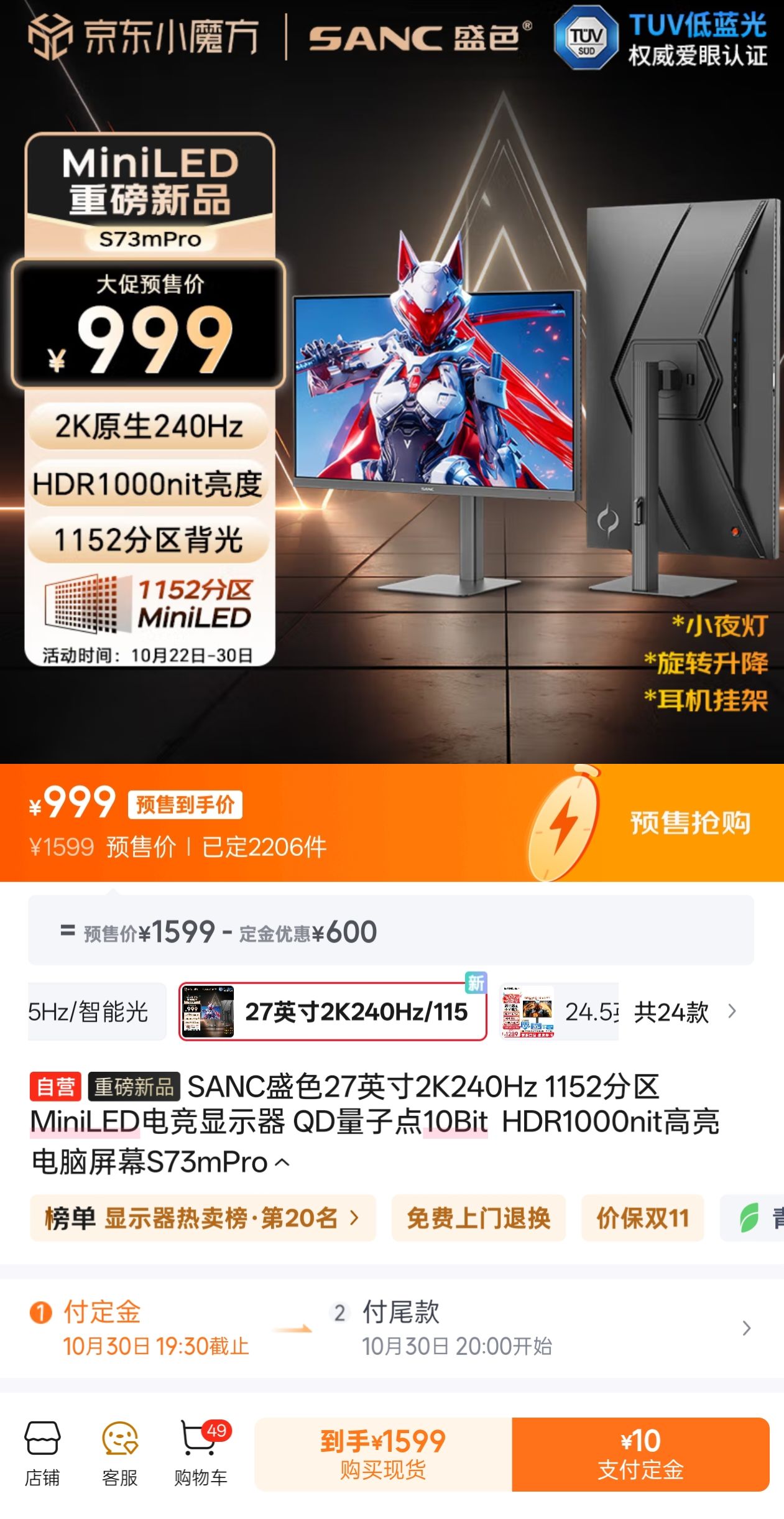 熱鬧的可不止KTC一個。盛色也於昨日(23號)京東自營旗艦店上架了一款27英寸 2K原生240Hz Fast IPS面板 峯值亮度1000nit的QD-MiniLED新品——S73mPro,支付10元定金,30號晚8點首發到手價999元。