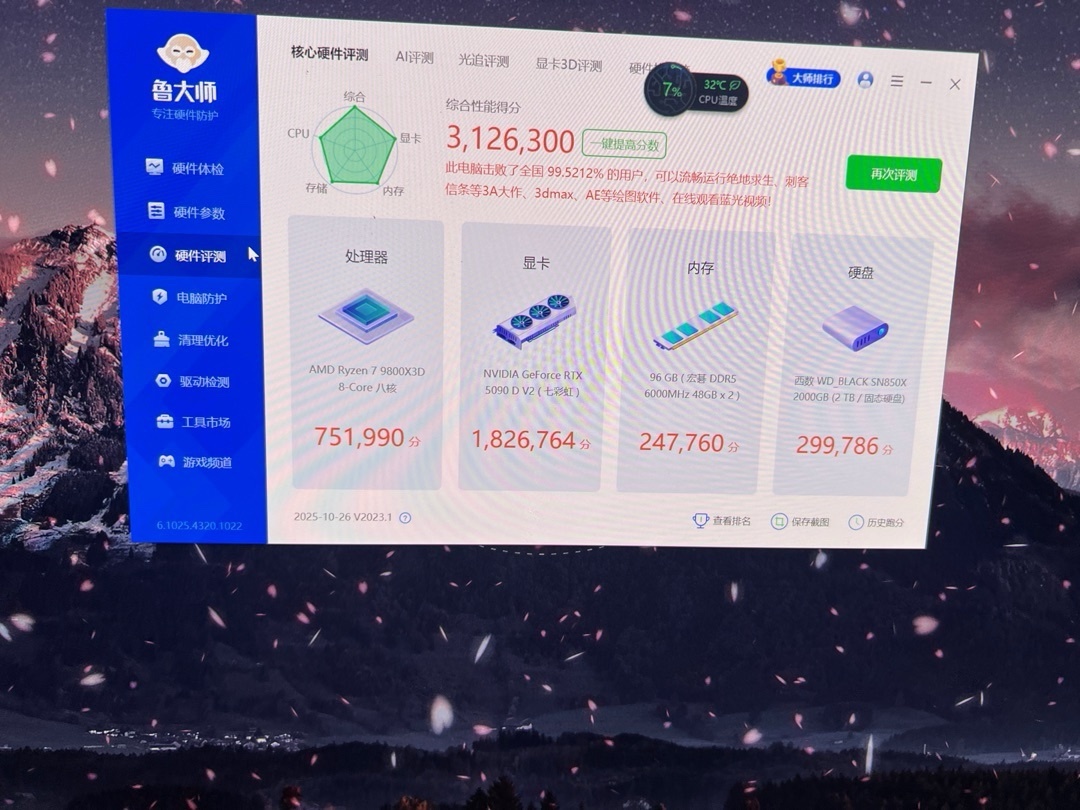 • 顯卡:七彩虹iGame GeForce RTX 5090 D v2 Vulcan W OC 24GB顯卡性能強勁,可輕鬆應對各種大型3A遊戲和專業圖形渲染任務。其正面三風扇及背板反向風扇組成超強散熱配置,還有iGame LCD智屏,新增旋轉機械結構,外觀酷炫且具有一定可玩性。