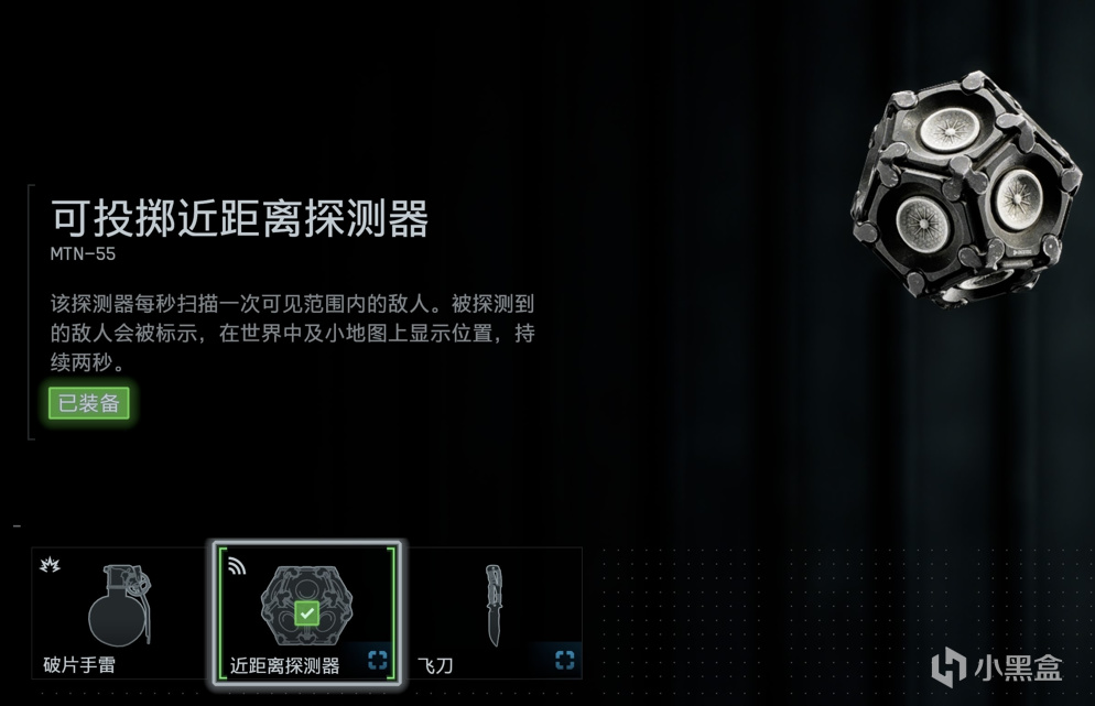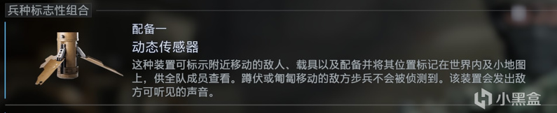這種裝置可標示附近移動的敵人、載具以及配備並將其位置標記在世界內及小地圖上,供全隊成員查看。蹲伏或匍匐移動的敵方步兵不會被偵測到。該裝置會發出敵方可聽見的聲音。