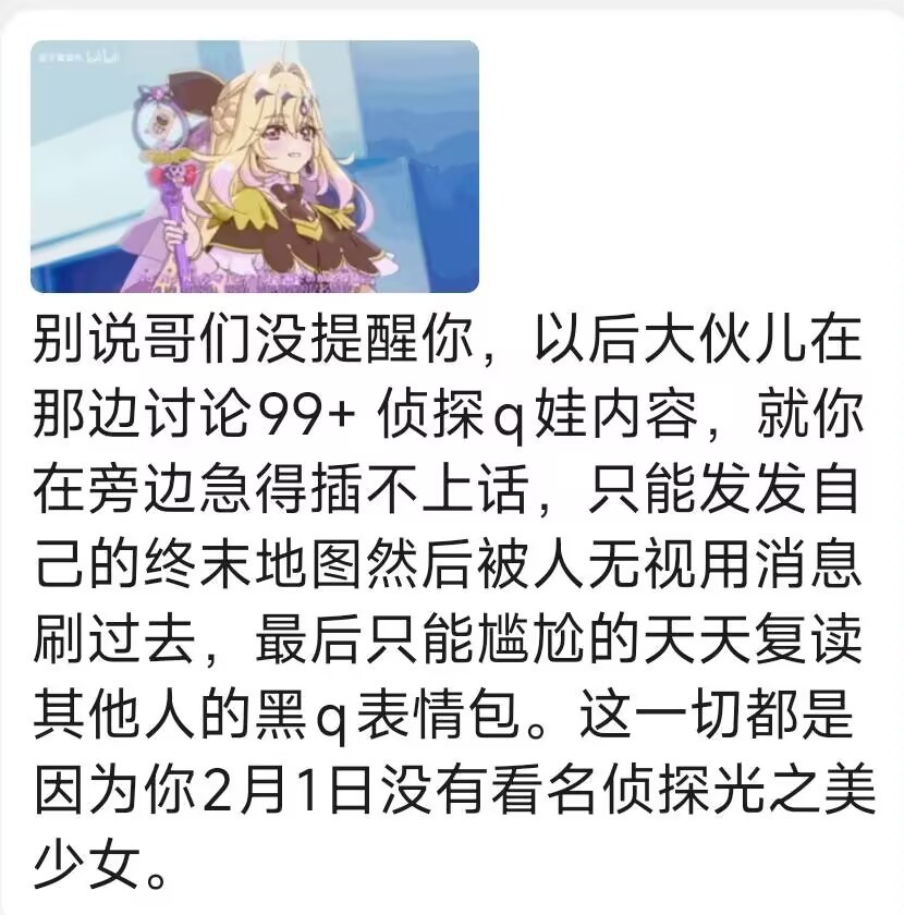 和對病嬌的喜愛,對旮旯給木的迷戀,對乙遊的熱愛類似,人們本質上是因爲缺少一個真正愛自己的人因而選擇去愛一個虛擬的人,這對於個人而言無罪,因爲是時代的各種矛盾造成了這樣的情況,但是在不合適時宜的場合發表不當言論,大友們對露露卡的喜愛逐漸轉變成了這樣的ky行爲,偵探q娃在2月1日首播,到2月5日的下午,p站上露露卡的創作內容中R18率已經突破了35%,這意味着以子供向作品爲基礎的二創中三分之一的內容,成了爲成人服務的色情內容,大友們汲取着這樣的乳汁,向剩下的全年齡內容發佈帶有性暗示的評論,在電影院發出奇怪的叫聲,令孩子們恐慌,哄搶本該屬於孩子的玩具,因而誇張地說,大友所做的事,不只是賽博發癲,這真真切切變成了現實裏的一場鬧劇——“本意是好的,可惜執行壞了”