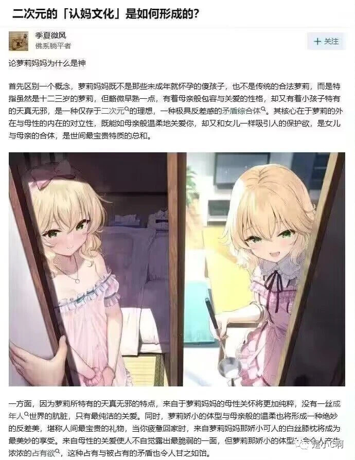 喜歡蘿莉的不一定喜歡蘿莉媽媽,但喜歡蘿莉媽媽的人一定很喜歡露露卡,知其然也要其所以然,大友們喜歡露露卡是因爲其蘿莉媽媽屬性,那人們爲什麼喜歡蘿莉+媽媽呢,這個問題比較複雜,如果我以前寫過關於粥的腳臭亞文化的興起,關於福瑞xp的發展,關於地雷妹風格的形成,那麼我能夠輕鬆地給出一些小衆xp的通解,在這裏,我不能簡單地將其解釋爲性壓抑,因爲霓虹大友性壓抑背後其實是日本失去的三十年+男女關係的轉變與女友生態位的空缺+東亞文化下缺愛與壓抑的必然,簡單地說,結構性壓迫使得人們喜歡蘿莉,回溯性建構使得人們喜歡媽媽,於是,蘿莉媽媽順應時代需求逐漸填補了缺少對象的霓虹z世代α世代宅宅的內心空白