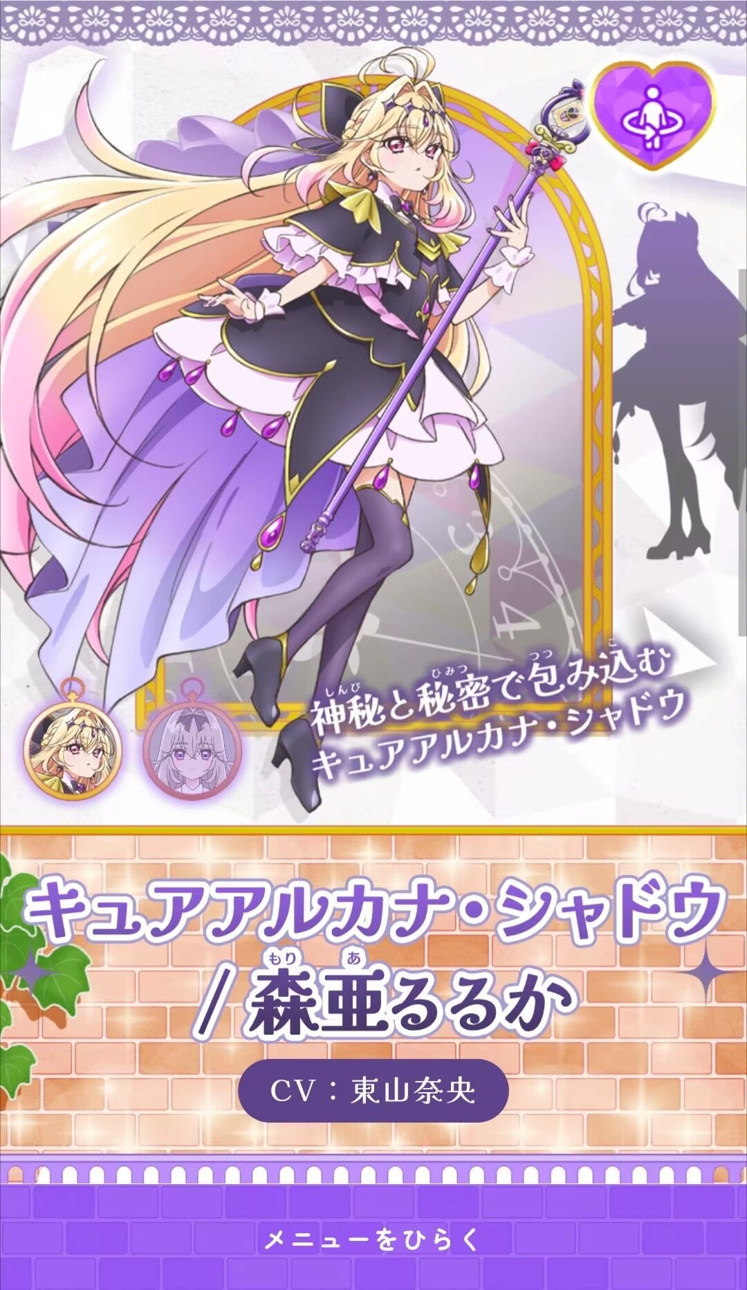 森亞露露卡(キュアアルカナシャドウ)這一角色來自《名偵探光之美少女》(簡稱“偵探q娃”),她作爲反派怪盜團的一員登場,後面會洗白,本來到這裏結束,露露卡只是個普通的子供向動漫的一個簡單被洗白的僞反派角色,但是畫師矢野茜的功力+東映的2d3d製作經驗讓這個角色過於美麗以至於吸引了過多目光,由此,一場大鳴大放的出圈運動開始了,我們的光之美少女,究竟會變成什麼樣子啊...