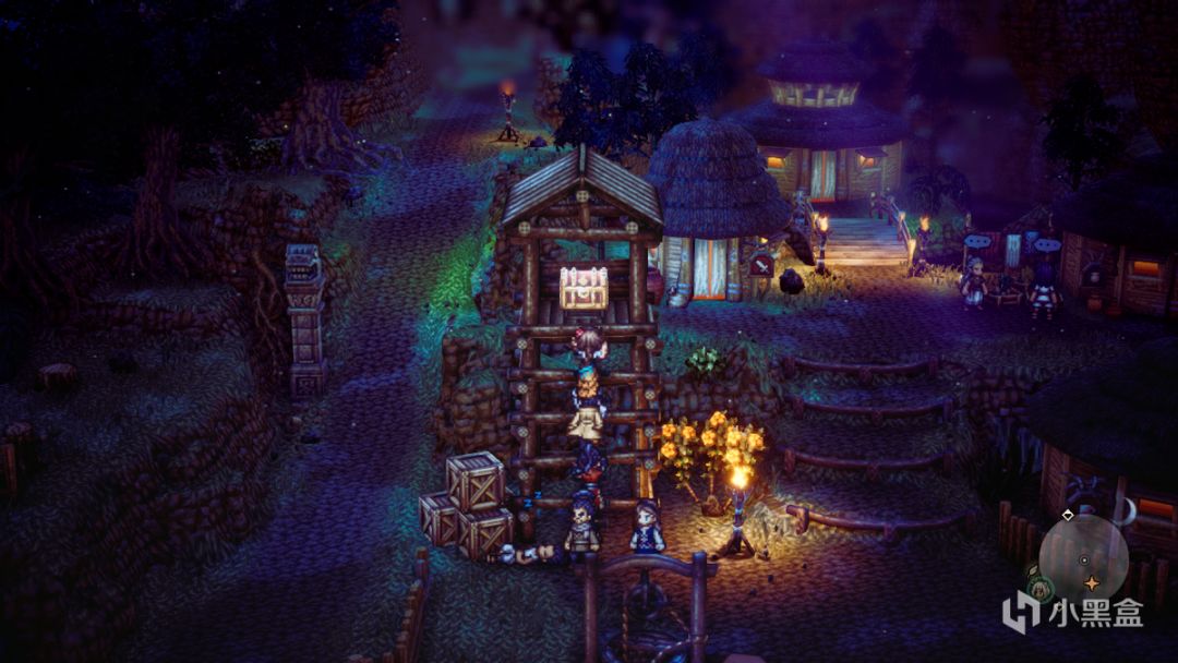 值得一提的是,八方旅人2爲了配合新增的晝夜系統,大部分地圖都有白天黑夜兩套景象,同一個場景之下可以隨時切換,陽光與月光不同的渲染賞心悅目,晝夜獨立的背景BGM別有一番風味。像八方旅人這樣讓我願意爲了看風景反覆跑圖的像素風遊戲,以前在我的遊戲生涯裏還從未出現過,只怕以後也不會再有第二個了。