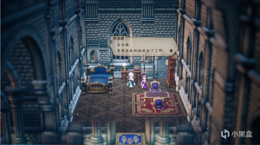 審美這種事當然各花入各眼,不過最起碼我敢肯定地說,八方旅人的像素風絕非低成本的簡陋產物,我更願意將其稱之爲一種至簡的美學。單憑遊戲中每一張精美的插圖和立繪,已經足以說明製作組的美術功底。不同地區之間的風土人情,用簡單的像素也可以塑造得各具特色,HD—2D技術演繹之下的鏡頭轉換,即便是三頭身人物之間的戰鬥場面也極具魄力。我寧願相信,這種畫風是SQUARE ENIX刻意爲自己所定下的挑戰課題,而且它以自己的藝術底蘊爲這個課題交出了完美的答卷。