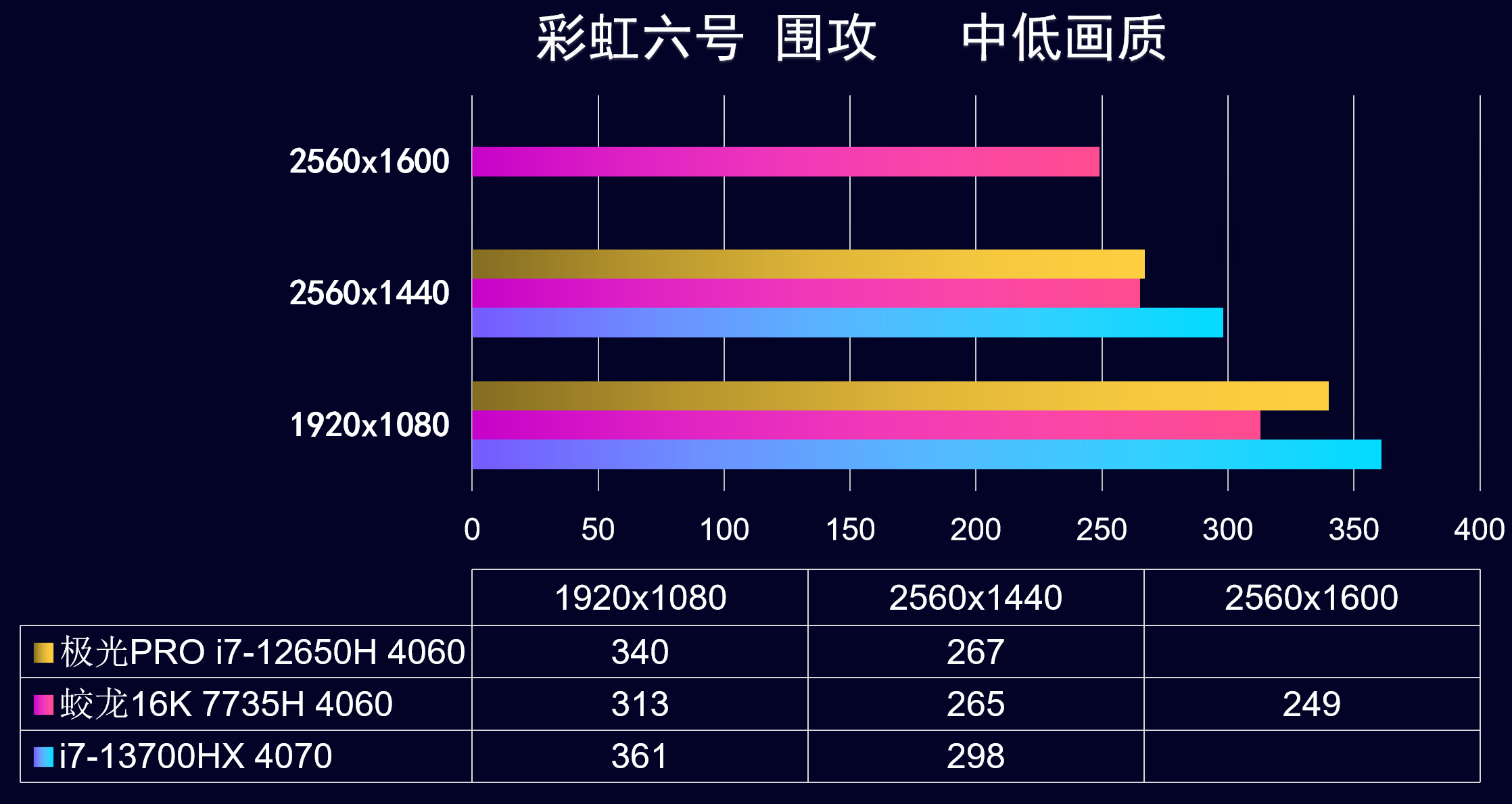極光PRO的 i7-12650H,綜合來看要比蛟龍16K的R7 7735H更強。