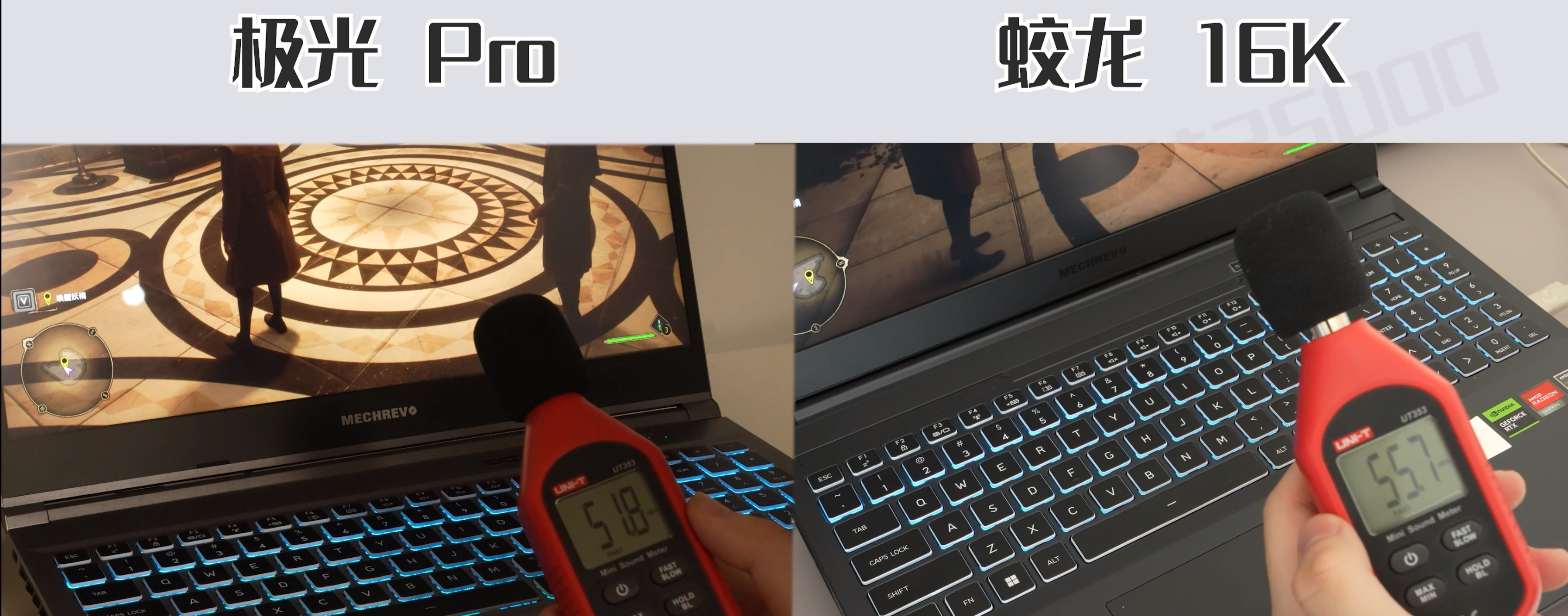 噪音實測極光PRO在52分貝,蛟龍16K在56分貝,同樣開啓狂暴模式,蛟龍16K噪音更大更吵。