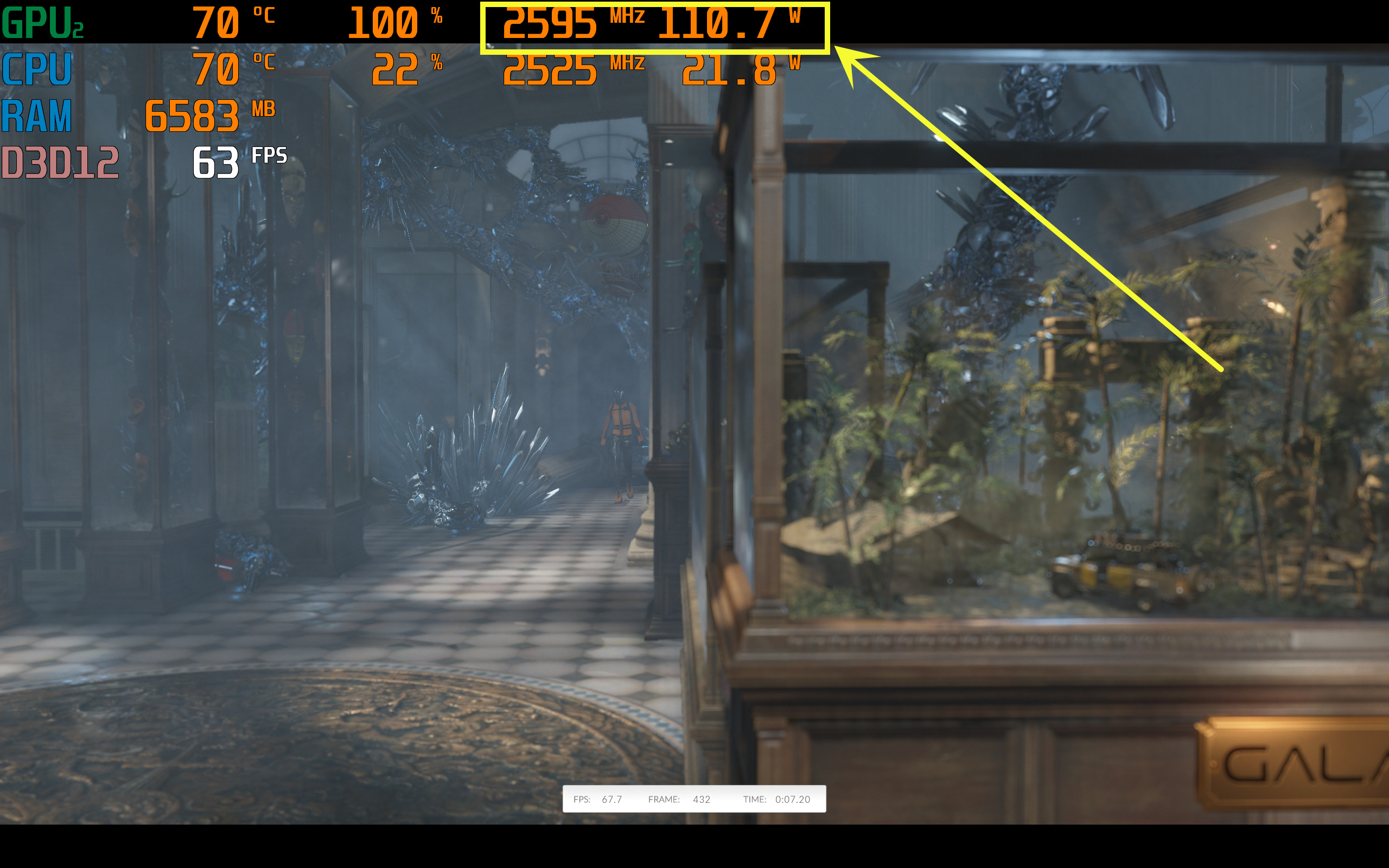 顯卡功耗最高都不到110W,核心頻率極光PRO略高 。極光的顯卡溫度爲 74度,比蛟龍16低了4度。