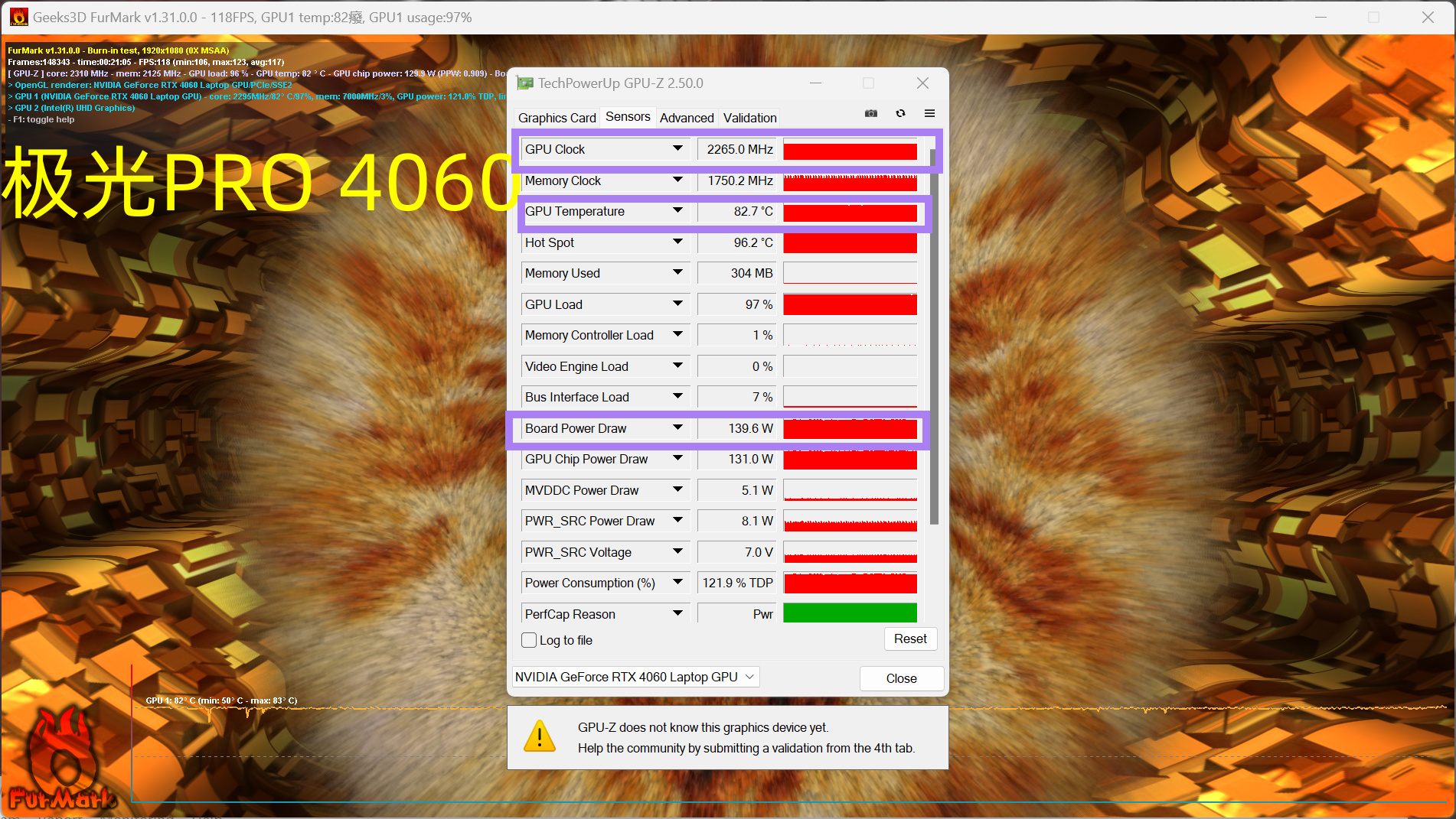 大部分4060顯卡的筆記本TS跑分一般在10500左右,測試的這兩款,開啓狂暴模式,顯卡核心頻率會有超頻,此時TS分數在10880左右