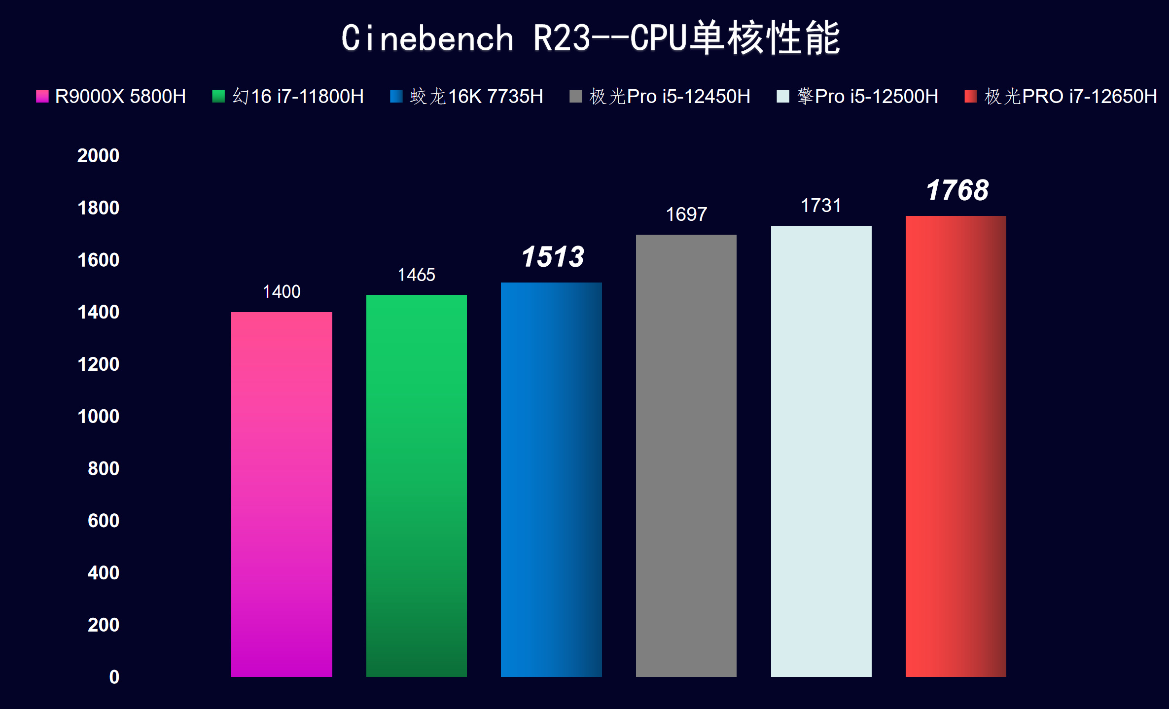 配置對比來看,極光PRO的賣點,CPU i7-12650H ,單核性能比蛟龍16K 7735H強16%左右。蛟龍16K,主要賣點是屏幕,16比10 亮度比極光PRO要高200左右,CPU看名字以爲是ZEN4,實際是6800H的馬甲U,只有CPU頻率提升了0.05G