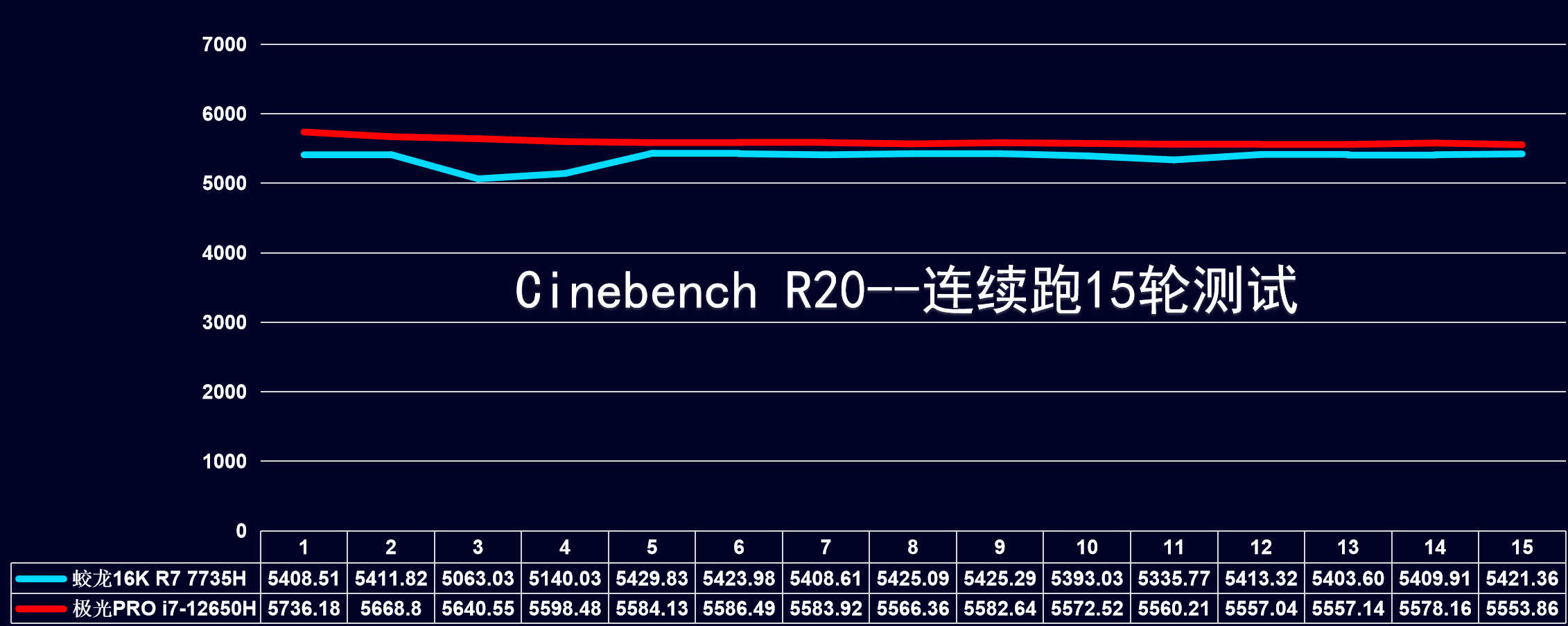 連續跑15輪R20測試,兩者總體差距不大,蛟龍16K的穩定性差一點,應該是受CPU溫度影響。