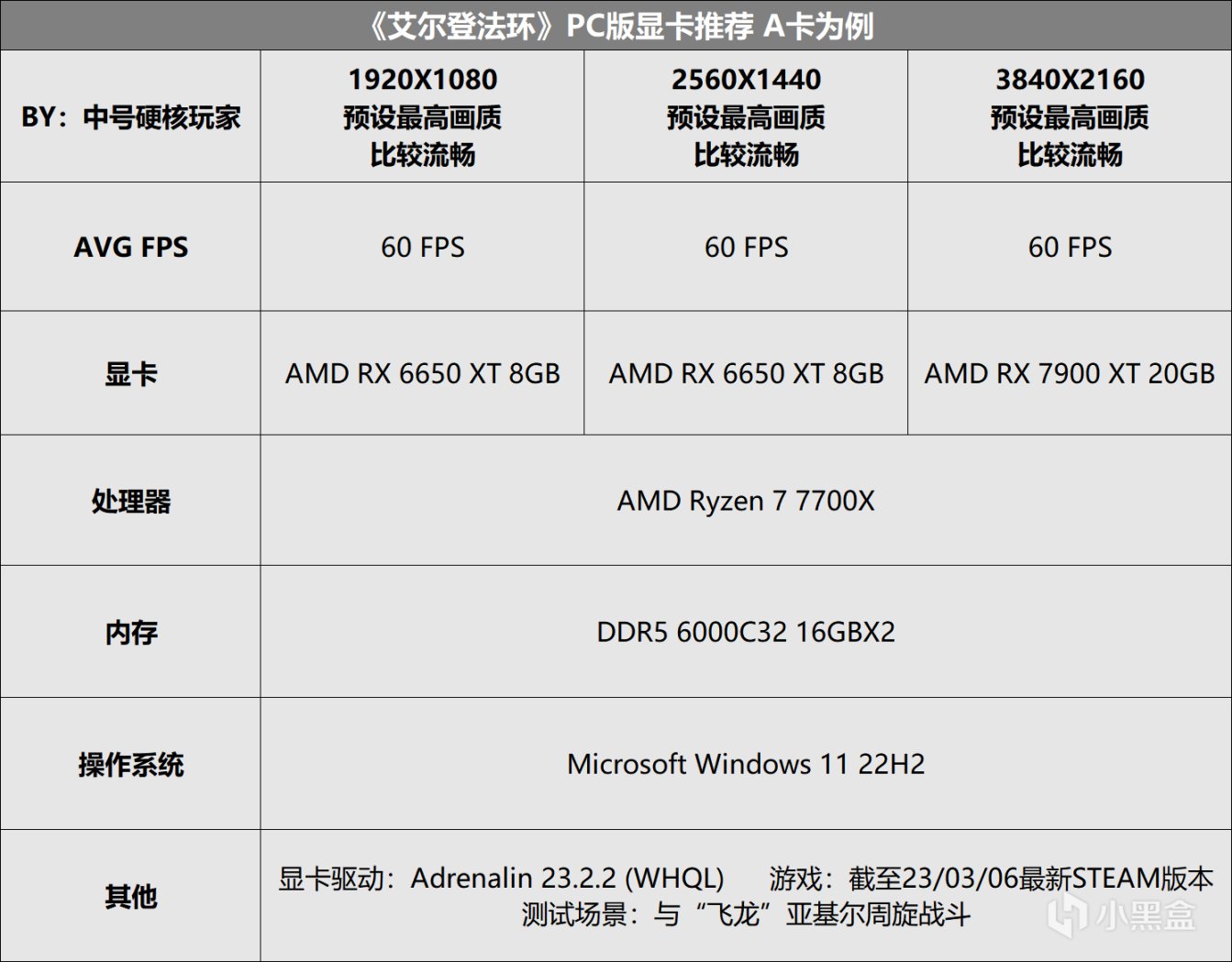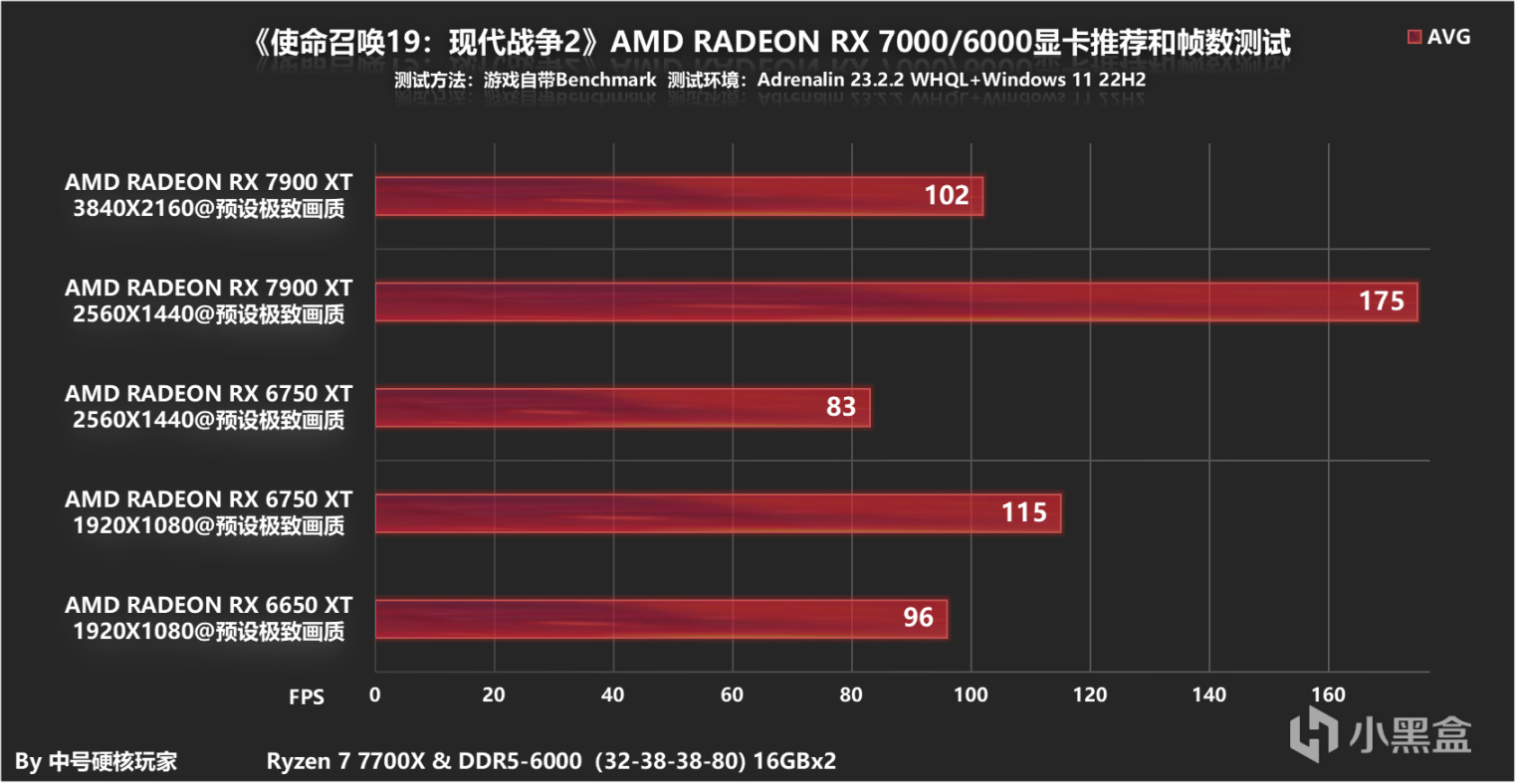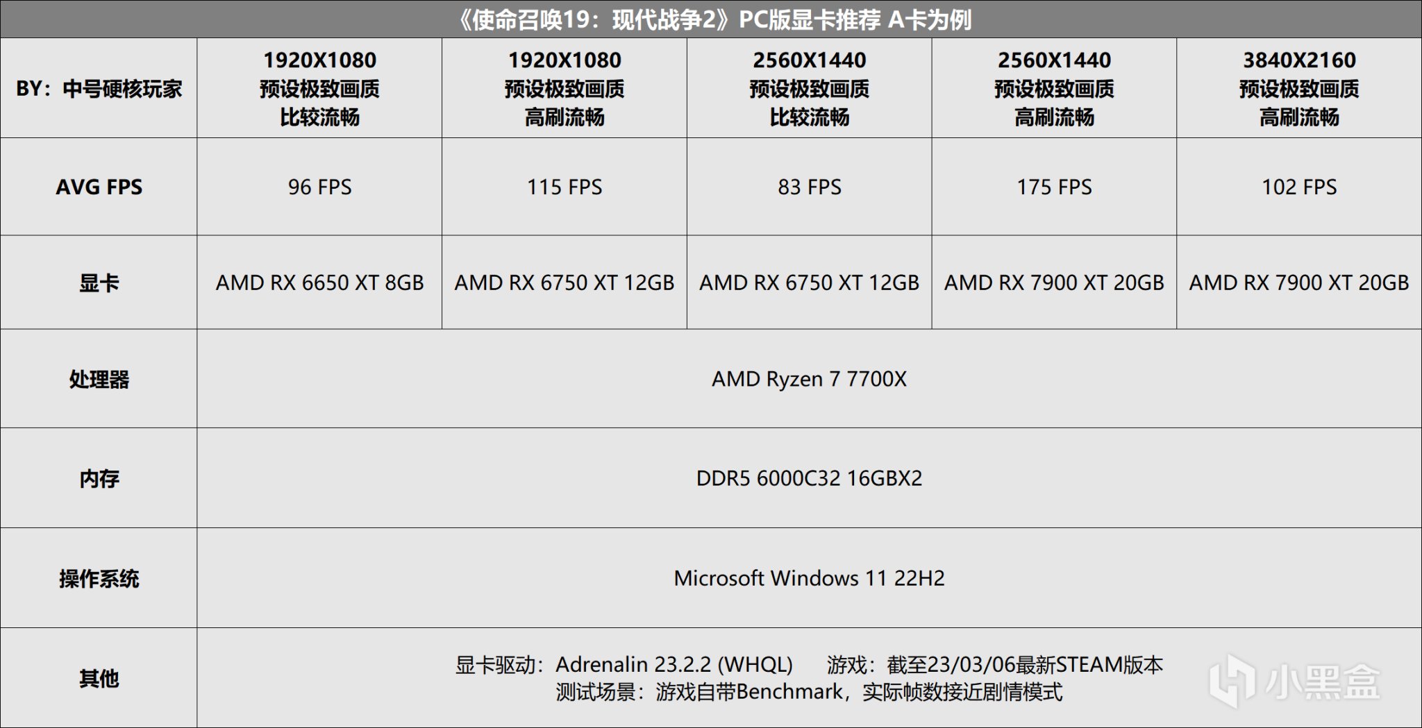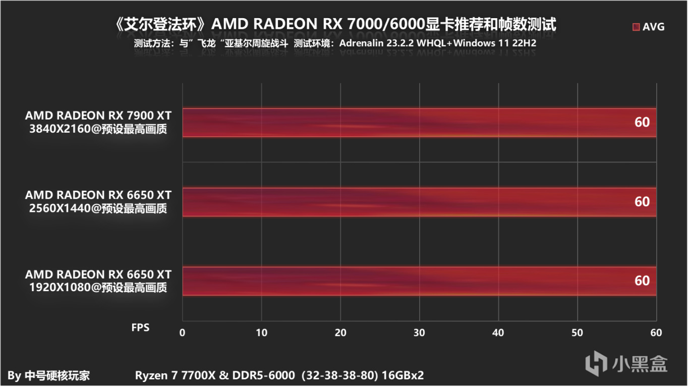 本次測試安裝Adrenalin 23.2.2(WHQL)的顯卡驅動(23年2月23日更新),操作系統是Windows 11 22H2最新版本,處理器是Ryzen 7 7700X是默認PBO AUTO狀態(對於本次挑選的遊戲,一般千元主流級處理器即可滿足),搭配兩根DDR5 6000C32 16GBX2組成雙通道內存,並在BIOS中開啓SAM技術提升一些顯卡性能,測試結果除了光追設置以外不會涉及到FSR技術,因爲這樣纔是最好的保底方案。