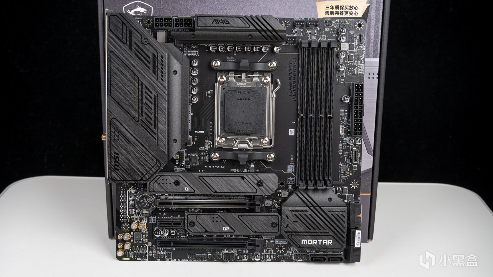 搭配測試的CPU是Ryzen 7 7700X,主板使用微星MAG B650M MORTAR WIFI迫擊炮輕鬆帶起來,其擁有12+1+2路豪華供電,CPU VCORE每相MOSFET可以達到80A,支持兩組M.2插槽兼容PCIe 4.0固態,是目前AM5平臺的性價比之選。