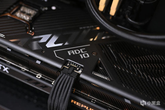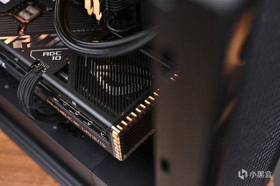 側面正中爲全新 12VHPWR 供電接口,支持 PCI-E5.0 規範,單口可達 600W,採用 18+3 超合金數字供電方案,GPU部分使用了 MP2888A 控制芯片+TDA21570(70A)MOSFET,顯存部分使用 UP9529QQKF+SIC6389(50A)供電方案。數字供電控制搭載高電流供電模組和 15K 電容,帶來強勁的性能表現。接口具備功率感測功能,配備高速電路,可持續監控電源供應器的輸入功率,並利用方便的 LED 指示電壓調節和電源線連接問題。