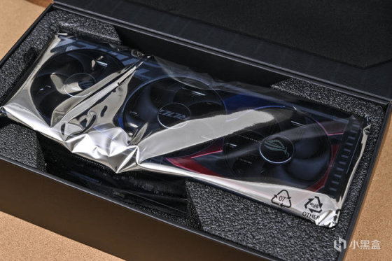 內膽盒上翻式,可以看到顯卡背防靜電袋包裹,內部採用定製發泡棉固定,保障顯卡運輸安全。