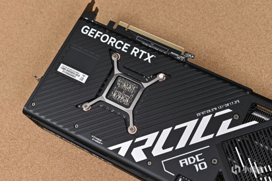 ROG Strix RTX 4080 O16G 猛禽配備金屬一體化背板。整卡採用全新的散熱模組設計,配備全包圍式散熱面板、背板和壓鑄金屬框架,使用了力學性能更好的ADC 10高硬度鋁合金材料,大幅增強顯卡扛變形的能力。