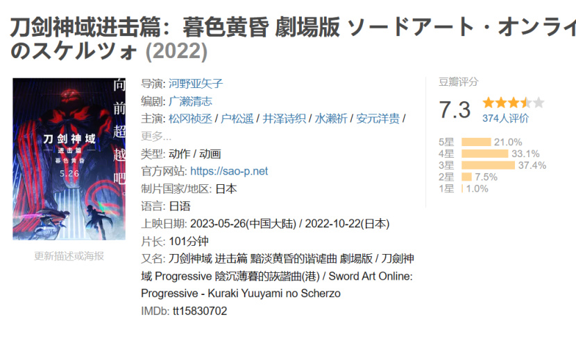 本片已於2022年10月22日在日本院線上映,而作爲《刀劍神域》系列時隔6年再次登上內地院線!各位SAO粉絲們回去電影院觀看嗎?
