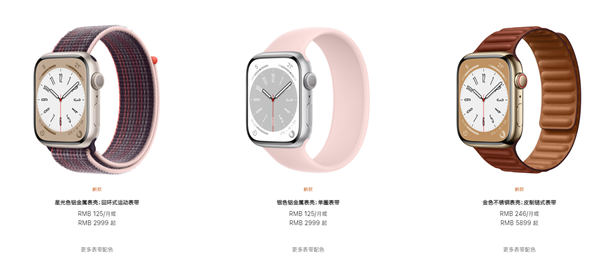 Apple Watch Series 8 41mm國行售價 2999 元,45mm國行售價 3199 元。