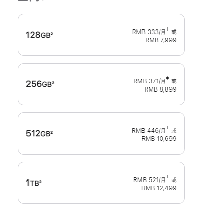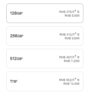 iPhone 14 Pro國行售價:128GB版7999元,256GB版8899元,512GB版10699元,1TB版12499元;