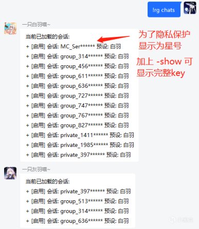 使用 -target 會話key 參數可以指定指令操作的目標會話, !rg chats 查看所有會話key,私聊會話的key爲 private_qq號