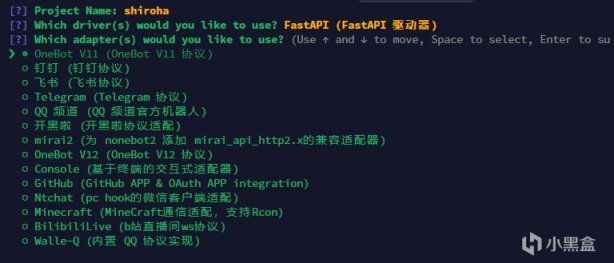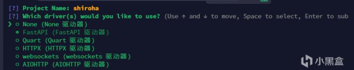 執行後如果出現如圖所示界面表示進入 nonebot 項目構建流程,此時可使用方向鍵 上/下 選擇選項,使用 回車 確定/勾選