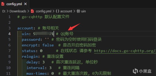 - 編輯 config.yml ,這次僅修改qq賬號即可,修改完畢後保存關閉
