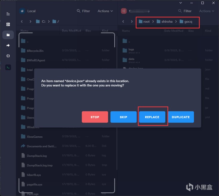 登錄後,pc端可以關閉 gocqhttp 窗口,並將 device.json 和 session.token 上傳到服務器的 gocq 目錄下(可使用 Termius 的 SFTP 功能)