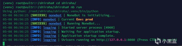此時 nonebot 已經成功啓動啦,不過還缺少一些必要的配置,我們先按下 ctrl+c 結束掉程序方便下一步操作