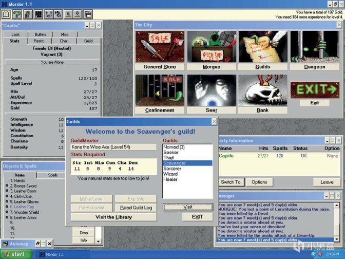 在管理你的隊伍時,先見之明(或者說“超遊”[6])是至關重要的。一個角色有可能加入他們的陣營和種族所允許的所有公會,但由於後續大量的經驗點數(XP)要求,這會變得很困難。公會等級可以提升到幾百,甚至幾千,並且忽視一個公會而專注於另一個公會,玩家會在後面的遊戲中受到嚴重的懲罰。一個平衡的團隊可以緩解這種情況,但個別成員的弱點會使你的探索工作變得緩慢。無論你採用哪種方式,都要爲大量的鑽研做好準備。